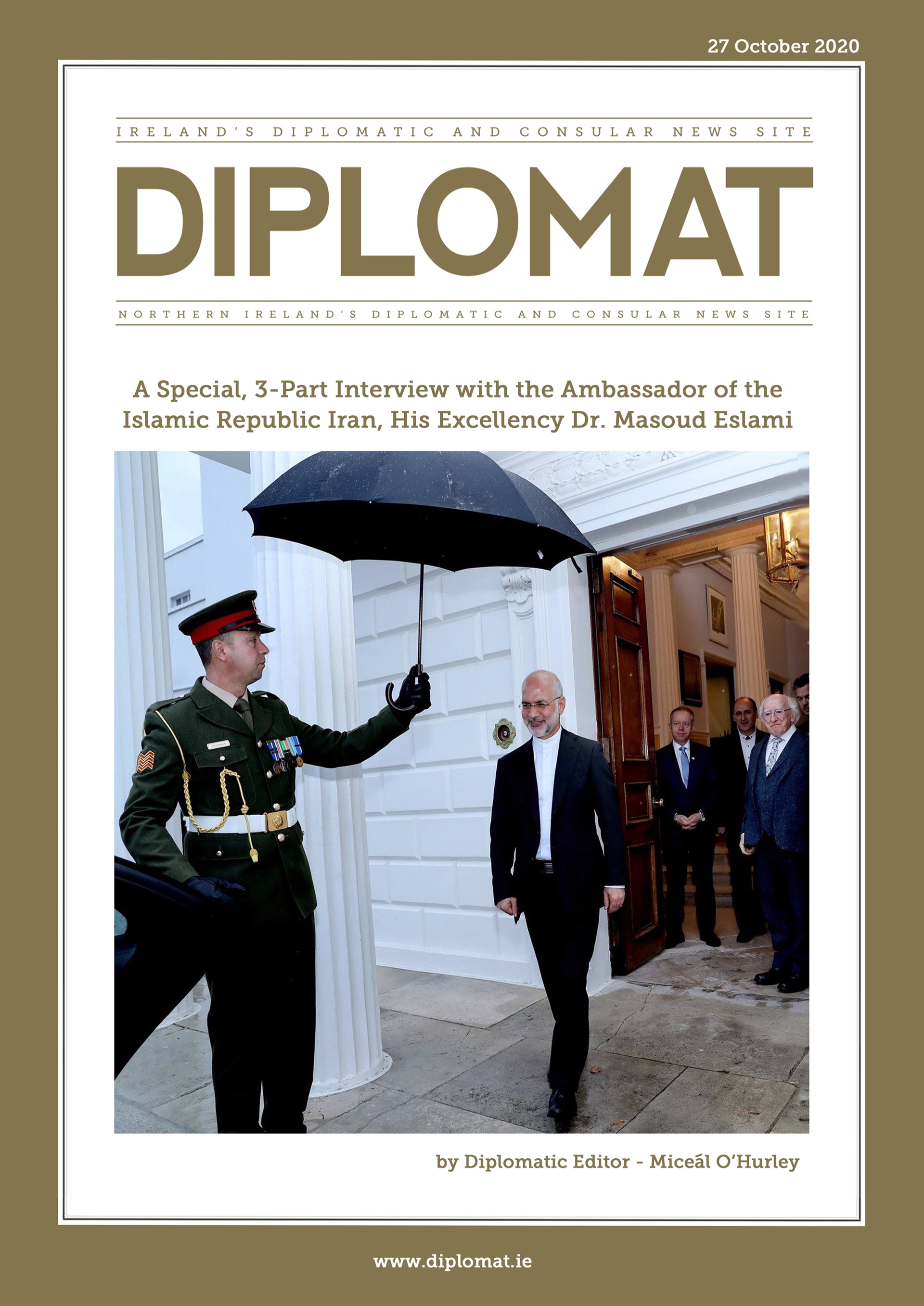 آقای دکتر اسلامی سفیر محترم جمهوری اسلامی ایران در ایرلند طی مصاحبه مفصلی با مجله دیپلمات به پرسش های تحلیلی خبرنگار این مجله پیرامون مسائل مختلف سیاست خارجی، مسایل منطقه ای و موضوعات بین المللی پاسخ دادند.