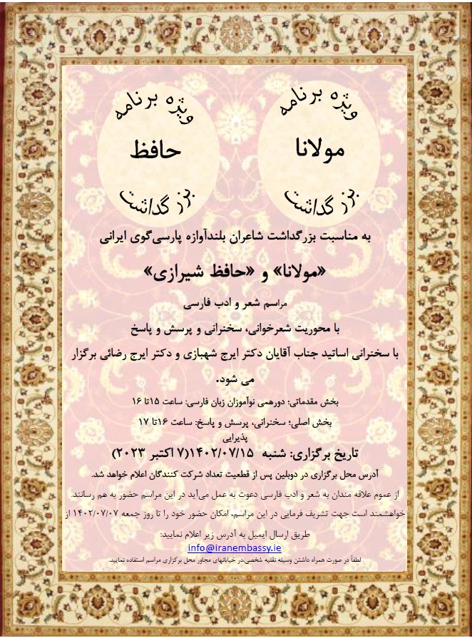 اطلاعیه به مناسبت برگزاری مراسم بزرگداشت شاعران بلند آوازه پارسی گوی ایران «مولانا» و حافظ شیرازی